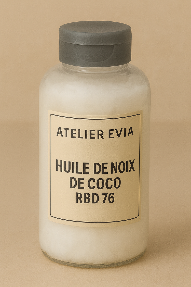 L’huile de noix de coco RBD (raffinée, blanchie et désodorisée) 76 °F est une huile végétale polyvalente largement utilisée dans la formulation de soins de la peau, soins capillaires et produits d’hygiène. Raffinée pour éliminer l’odeur et la couleur naturelles, elle offre une texture légère, une odeur neutre et une excellente stabilité, ce qui la rend adaptée aussi bien aux produits cosmétiques qu’à la savonnerie artisanale et industrielle.